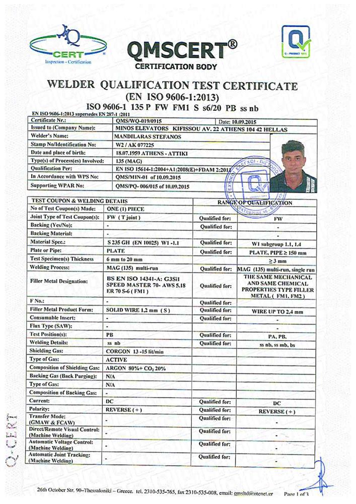 Η ΜΙΝΩΣ αποδεικνύεται για μια ακόμη φορά πόσο ικανή είναι στο συγκεκριμένο τμήμα, αφού όλοι οι έλεγχοι κρίθηκαν παραπάνω από επιτυχημένοι. Απόρροια της όλης διαδικασίας είναι η έκδοση πιστοποιητικού τόσο για την εταιρεία, όσο και προσωπικά για κάθε έναν από τους συγκολλητές της!